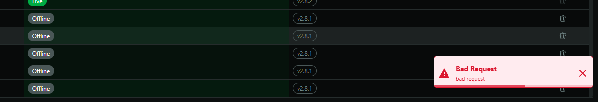 I’m having trouble deleting inactive servers (nodes) from Netdata. Each time I try to remove them, I receive a Bad Request error.